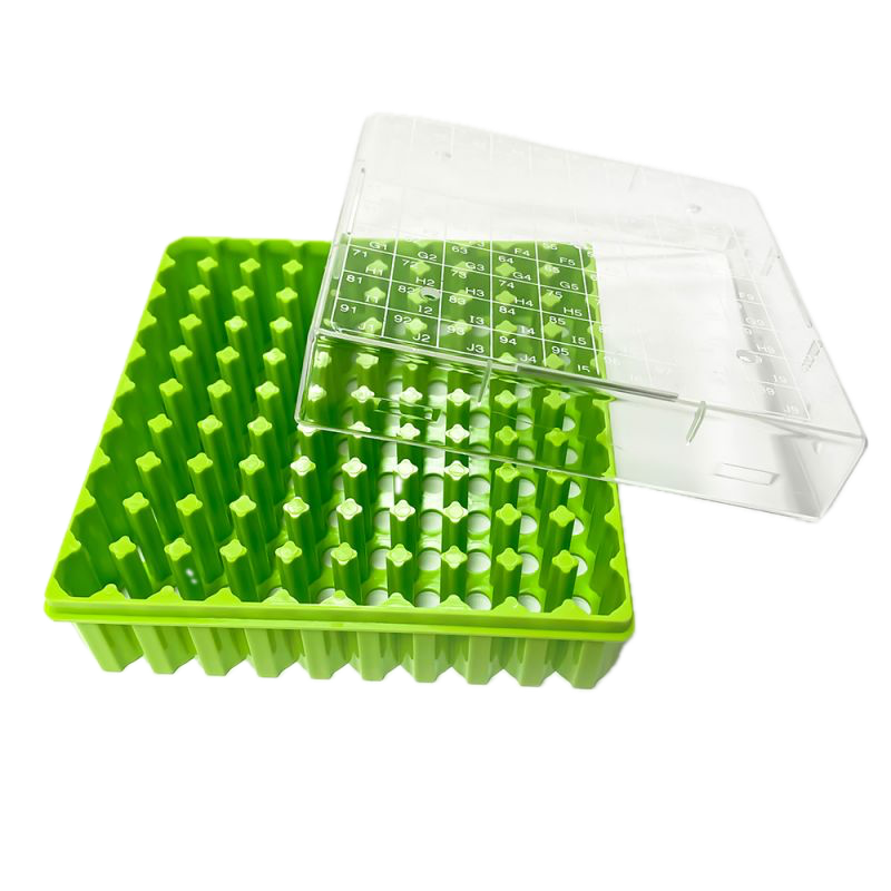 Deze polypropyleen cryogene rekken zijn voorzien van een vergrendelingsmechanisme dat het mogelijk maakt cryogene flacons met één hand te openen.