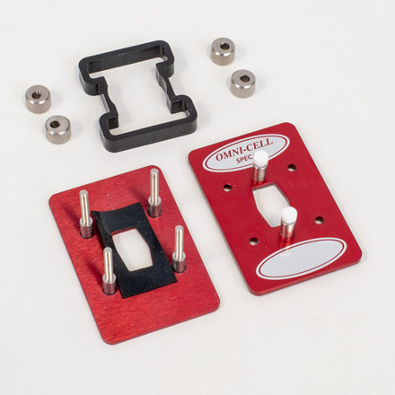 Omni-Cell behuizing De behuizing van de Omni-Cell bestaat uit twee aluminium steunplaten met daartussen een kunststof inzetstuk. Vier duimschroeven worden gebruikt om deze delen uit te lijnen en aan elkaar te bevestigen. De transmissievensters zitten ingeklemd tussen de steunplaten en sluiten af op een PTFE-pakking op de voorplaat en een neopreen pakking op de achterplaat. De voorplaat is voorzien van twee Luer-poorten met PTFE-stoppers.